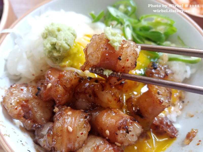 한줄평: 데이트하기 좋은 덮밥 전문점! 방문 시기: 2021년 4월 이날 가격: 29,800원 시그니처 메뉴: 한우대창덮밥 재방문의사: 한 번 방문한 것으로 만족 |