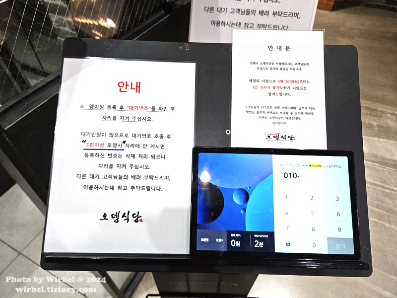 오뎅식당은 만석시 웨이팅 등록을 하면 됩니다.