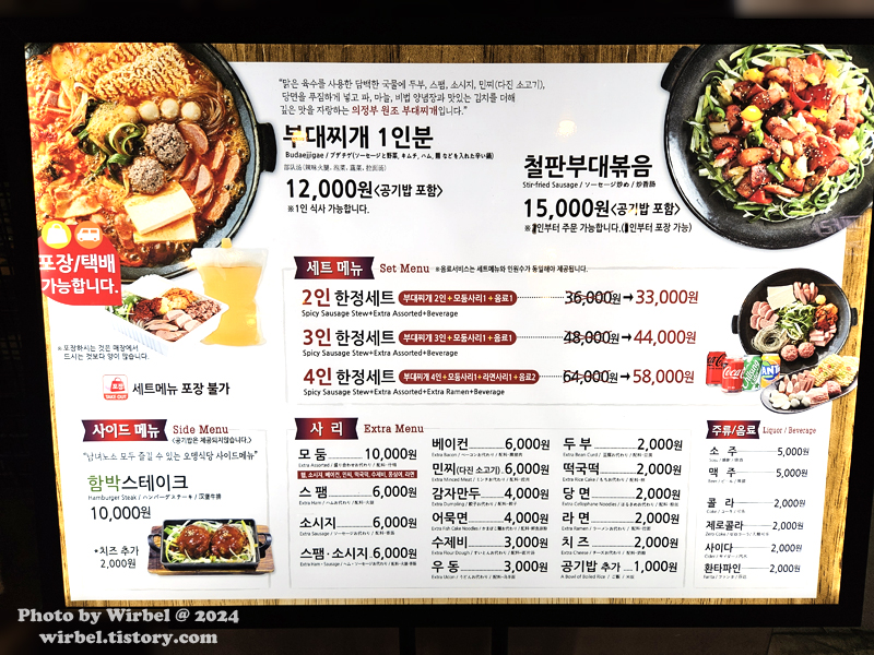 한줄평: 잠실 롯데월드몰에서 부대찌개 먹을 수 있는 곳! 방문 시기: 2024년 5월 이날 가격: 24,000원 시그니처 메뉴: 부대찌개 재방문의사: 롯데월드몰에서 부대찌개 먹고 싶을 때 |