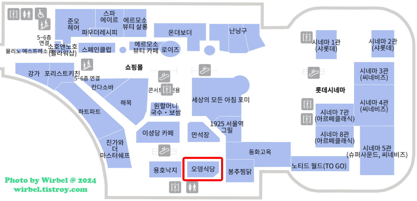 잠실 롯데몰 6층 맛집 오뎅식당 위치.