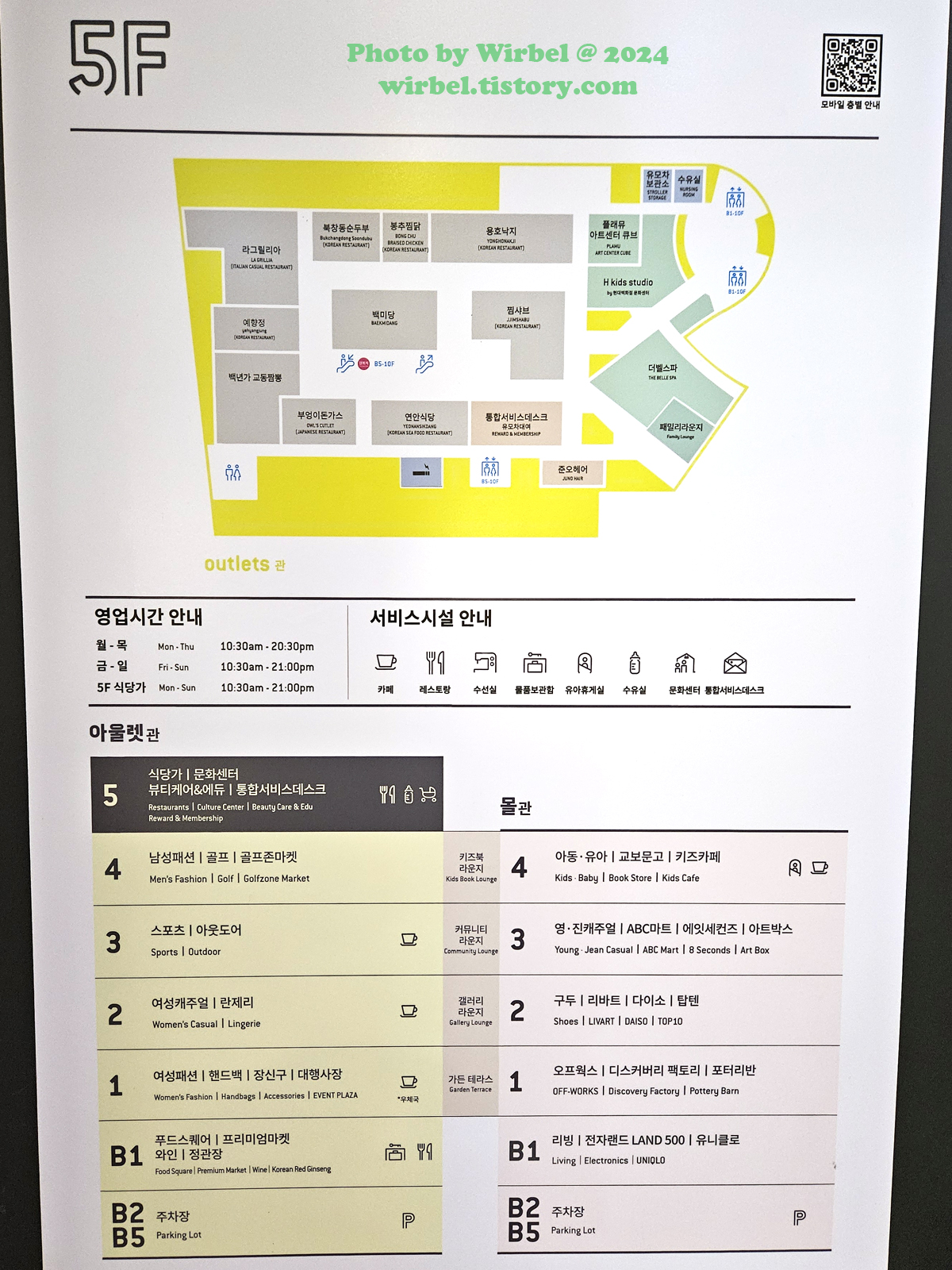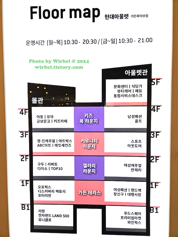 장지역 현대아울렛 가든파이브점 층별 안내.