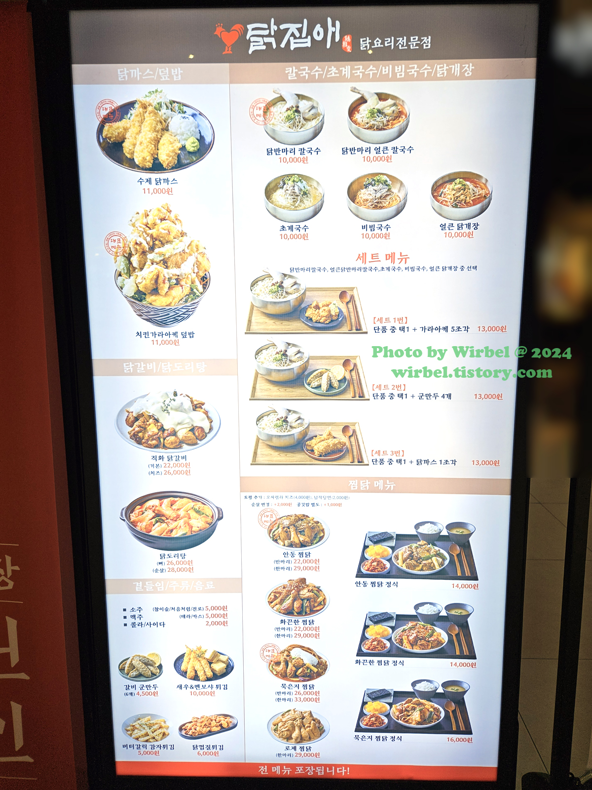 현대아울렛 가든파이브 닭집애 메뉴 가격.