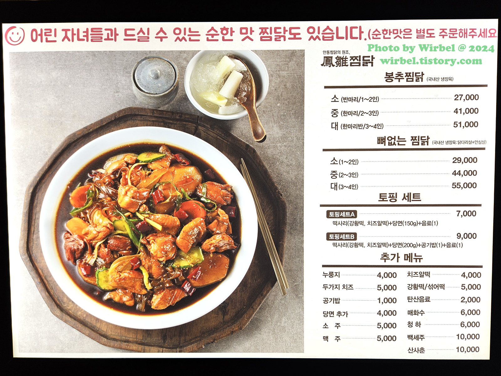 현대아울렛 가든파이브 찜닭 봉추찜닭 메뉴 가격.