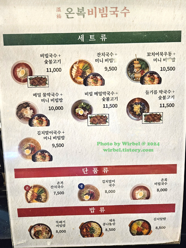 현대아울렛 가든파이브 온복비빔국수 메뉴 가격.