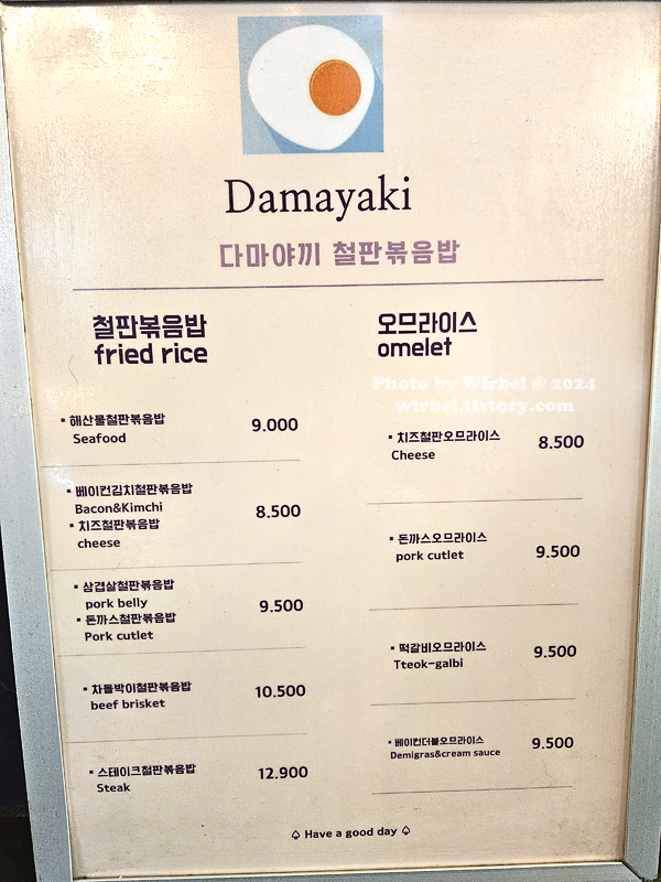 현대아울렛 가든파이브 볶음밥 다마야끼 메뉴 가격.