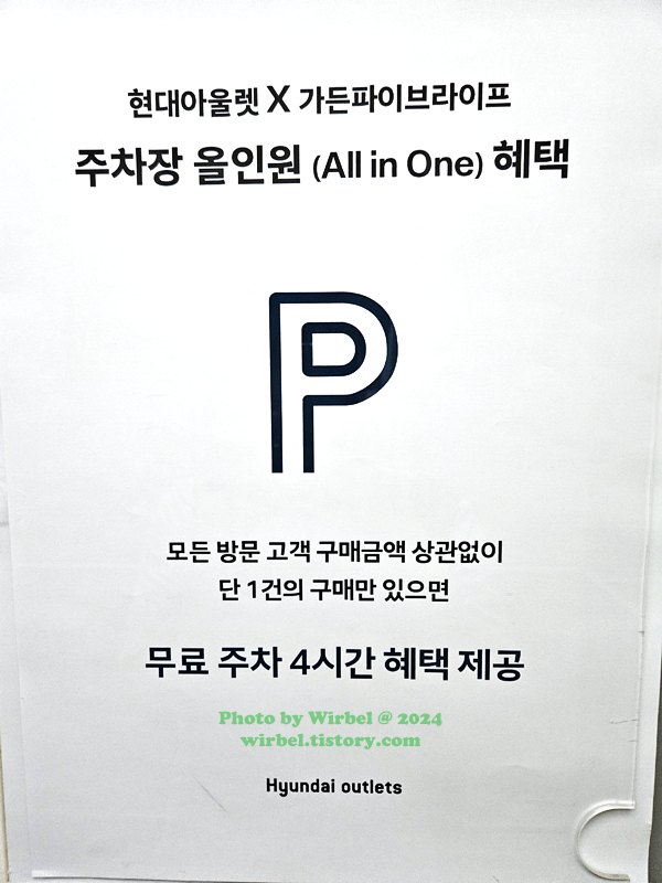 장지역 가든파이브 현대아울렛 주차는 지하주차장을 이용하면 되고 구매시 4시간 무료 주차를 제공합니다.
