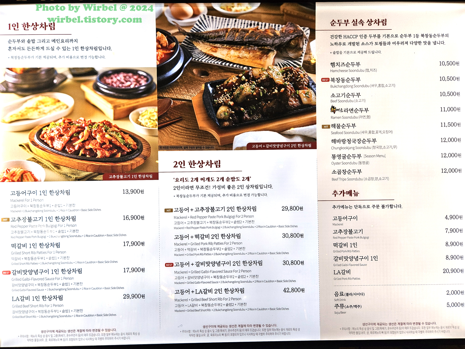 현대아울렛 가든파이브 한식 북창동순두부 메뉴 가격.