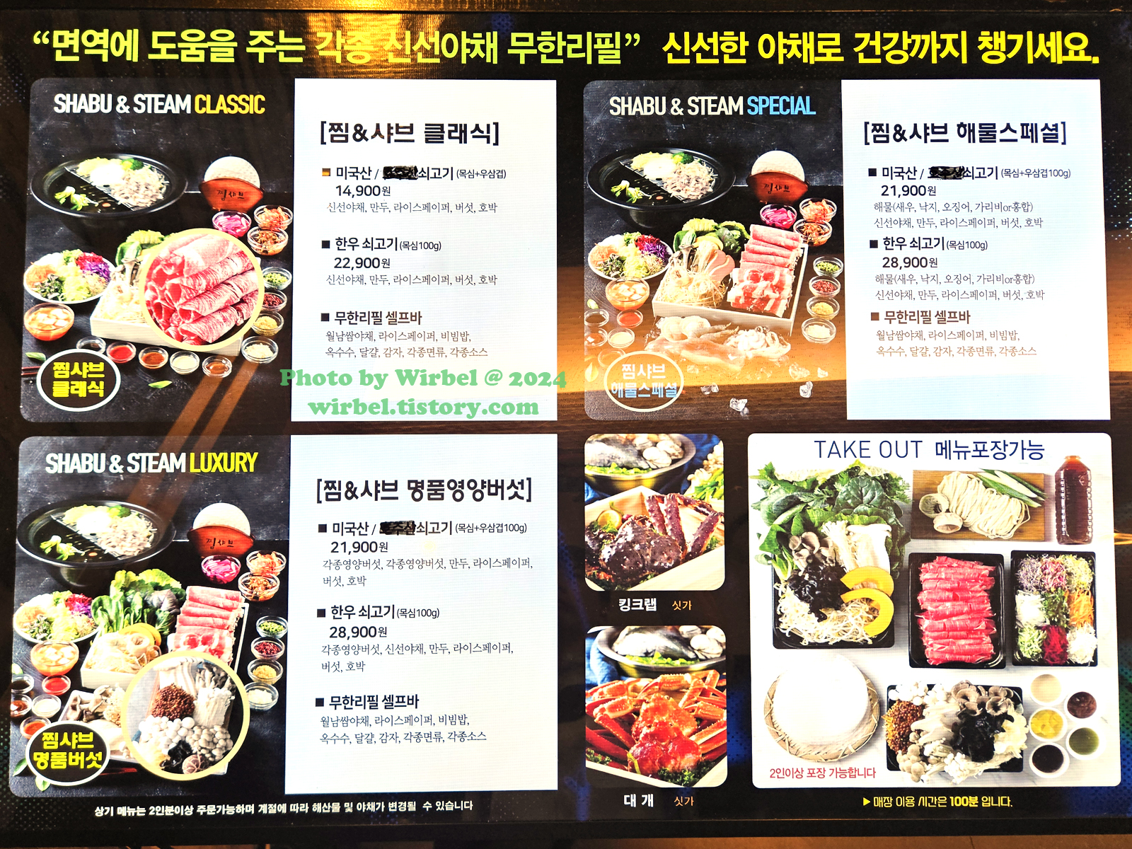 현대아울렛 가든파이브 찜샤브 메뉴 가격.