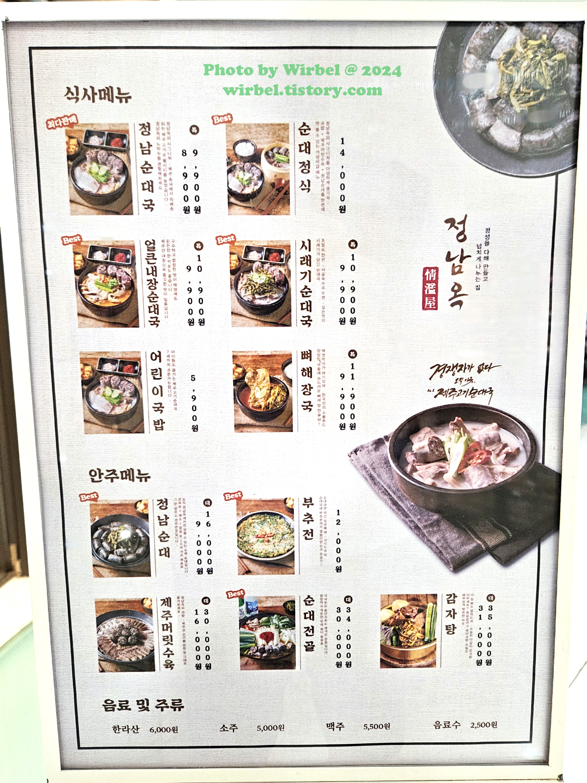 현대아울렛 가든파이브 순대국 정남옥 메뉴 가격.