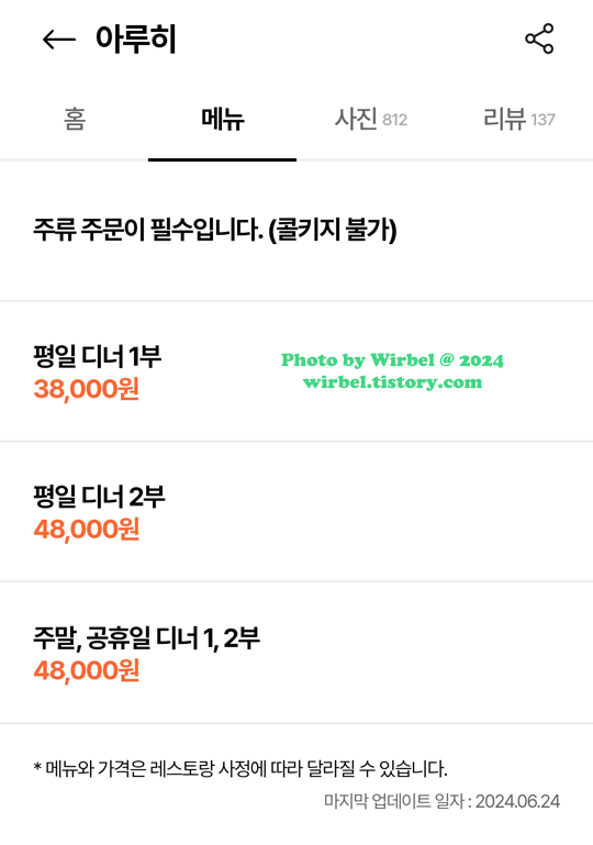 2024년 12월 아루히모모 디너 오마카세 후기 https://wirbel.tistory.com/992