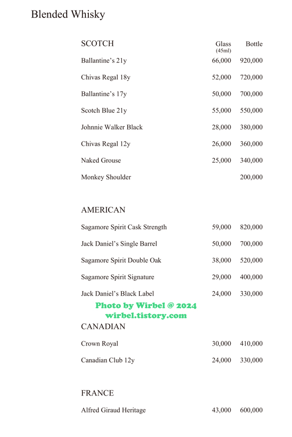 롯데호텔월드 더라운지앤바 주류 메뉴.