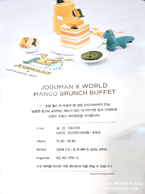 롯데호텔월드 망고 브런치 뷔페는 2024년 7월 6일부터 8월 31일까지 주말 11:30 ~ 13:30 진행됩니다.