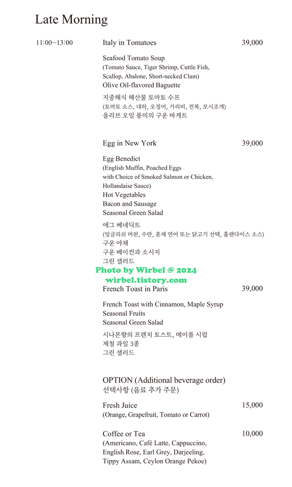 잠실 롯데호텔월드 라운지 조식 메뉴 가격.