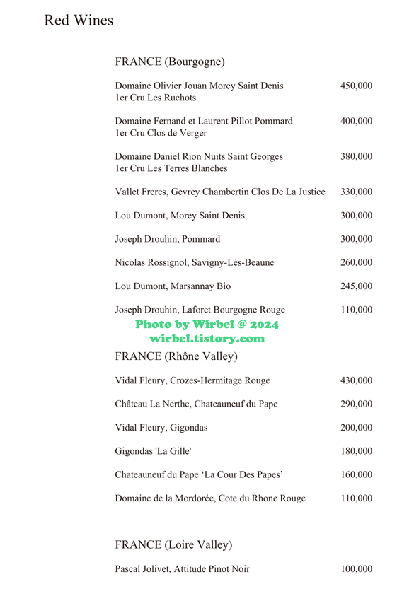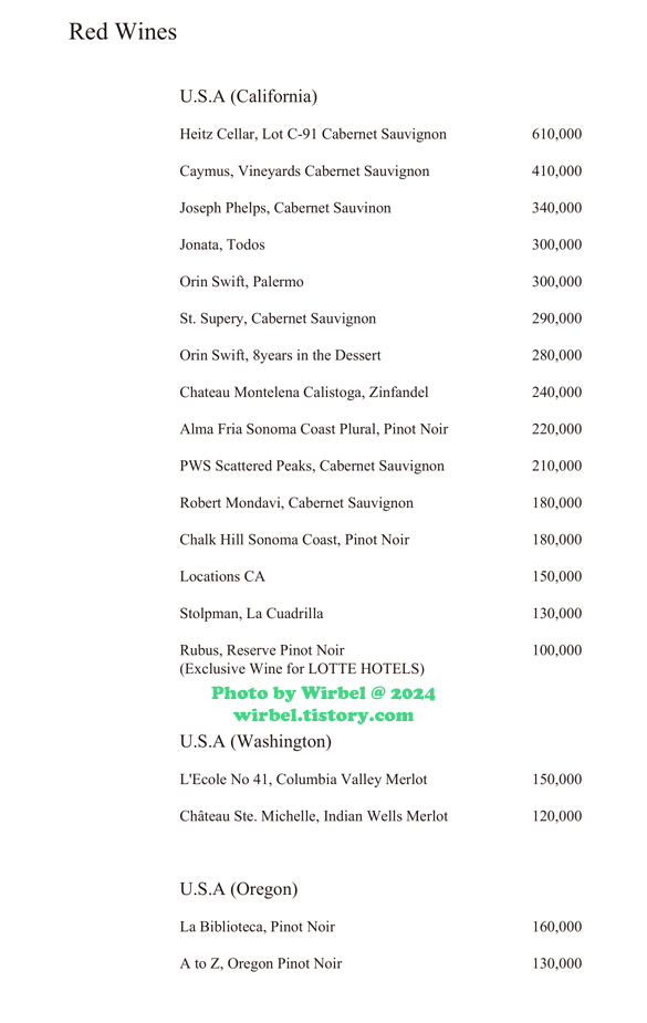 롯데호텔월드 더라운지앤바 와인 리스트.