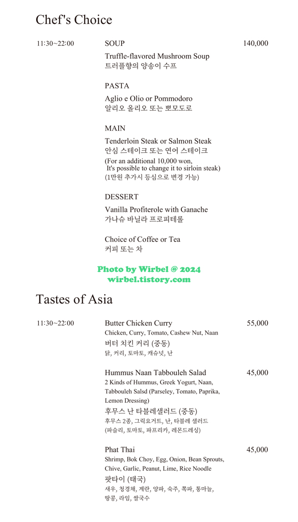 롯데호텔월드 더라운지앤바 런치 메뉴 가격.
