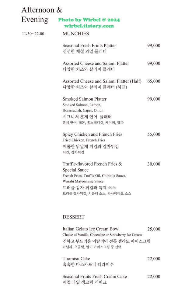 잠실 롯데호텔월드 더라운지앤바 메뉴.