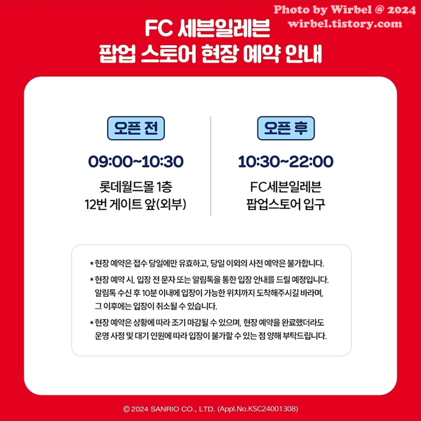 산리오 FC세븐일레븐 팝업스토어 굿즈샵 운영시간은 10:30 ~ 22:00입니다.