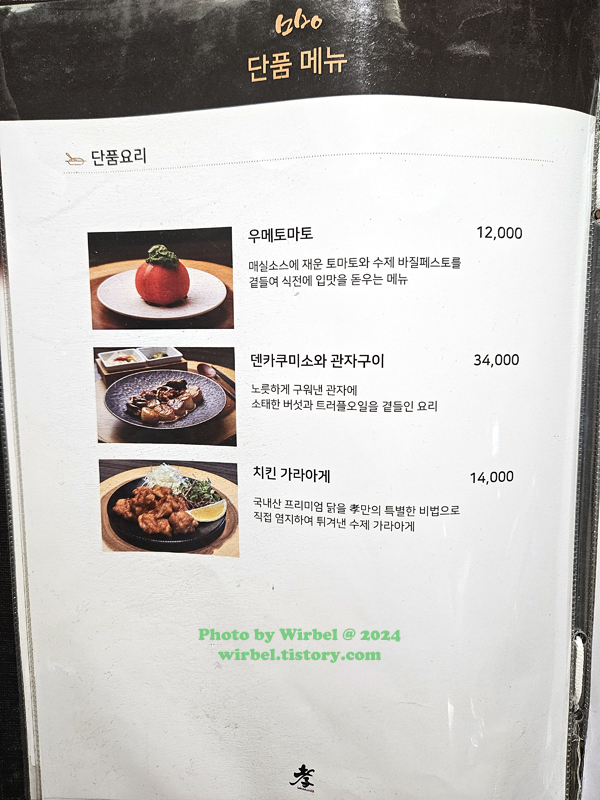 판교 더현대 제주상춘재 메뉴 가격.