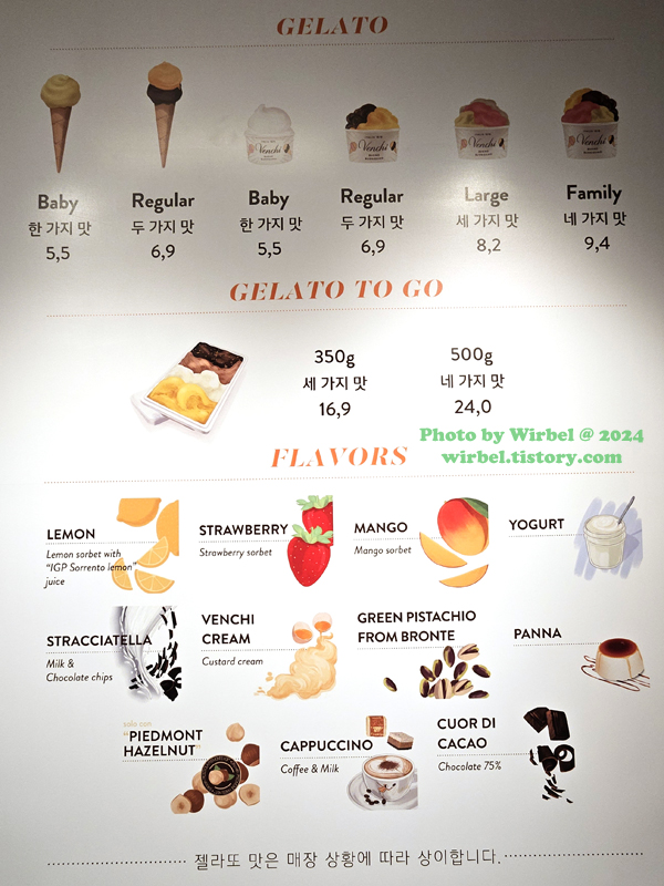 판교 현대백화점 이탈리 벤키젤라또 아이스크림 가격.
