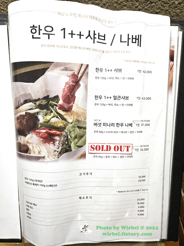한우 샤브샤브 42,000원.