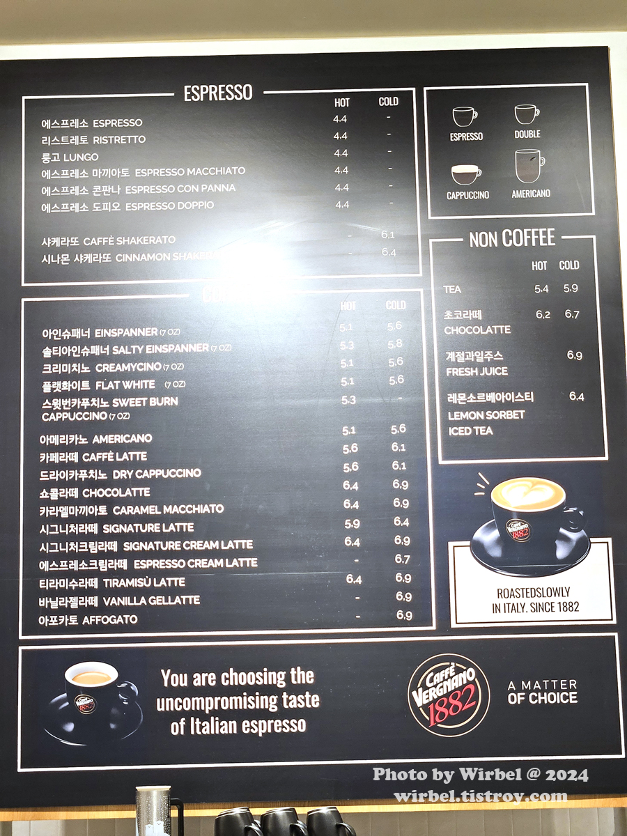 판교 현대백화점 이탈리 카페베르나노 커피 가격.