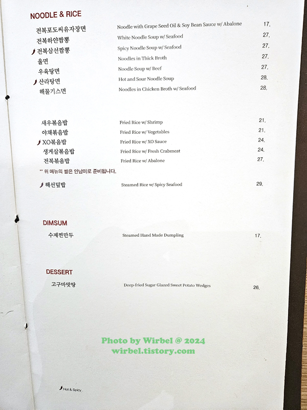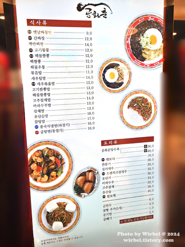 판교 현대백화점 신승반점 메뉴 가격.