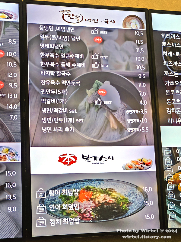 판교 현대백화점 한솔냉면 한솔국시 메뉴 가격.