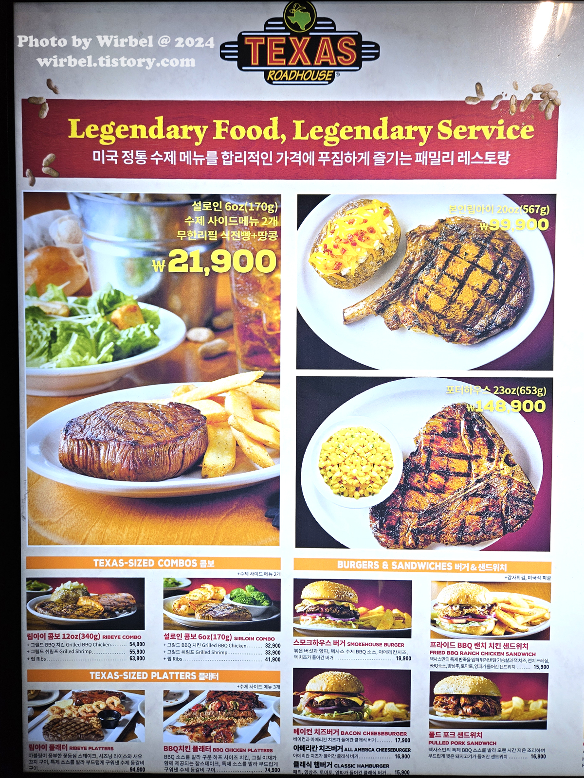 판교 현대백화점 패밀리레스토랑 텍사스로드하우스 메뉴 가격.