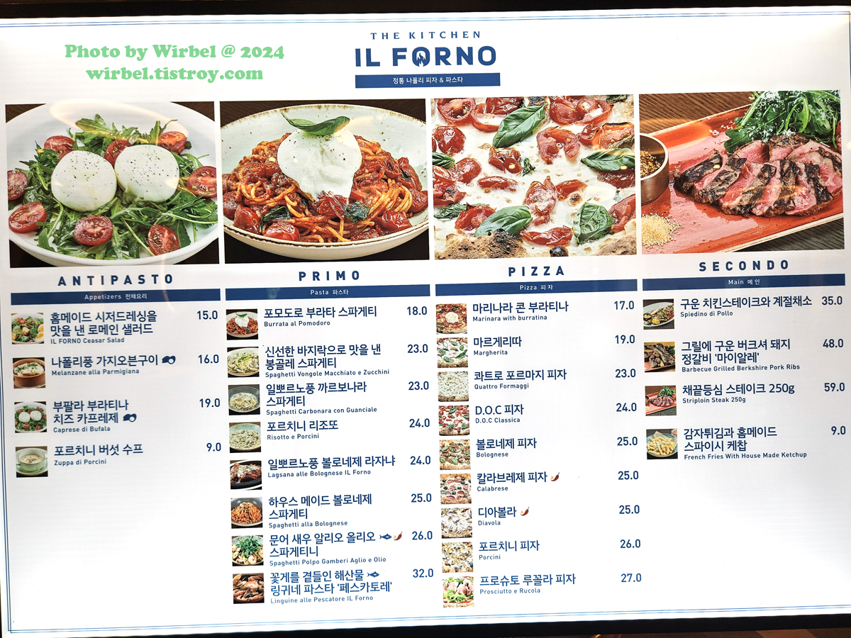 판교 현대백화점 이탈리 메뉴 가격.