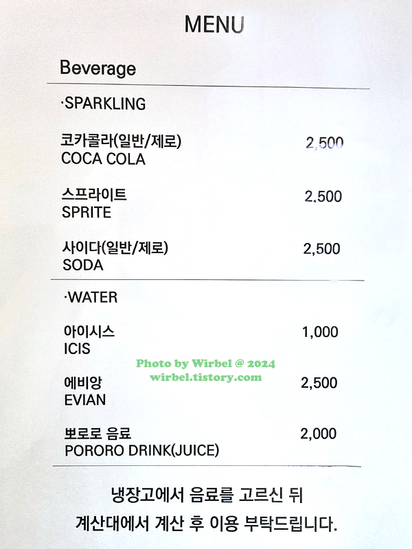 판교 현대백화점 오크베리아사이 음료 가격.