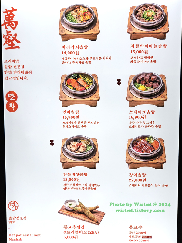 판교 현대백화점 전주선비빔 메뉴 가격.