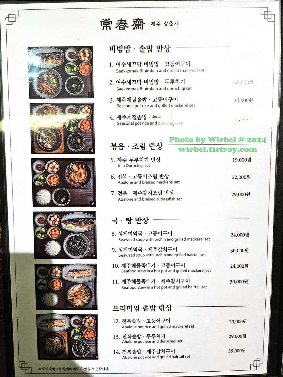 판교 현대백화점 제주상춘재 메뉴 가격.