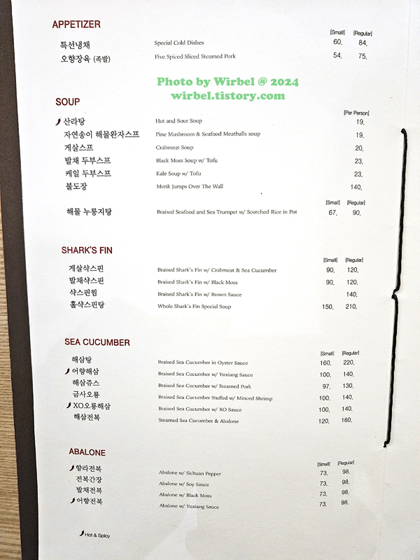 판교 현대백화점 식당가 JS가든 중식 코스 가격.
