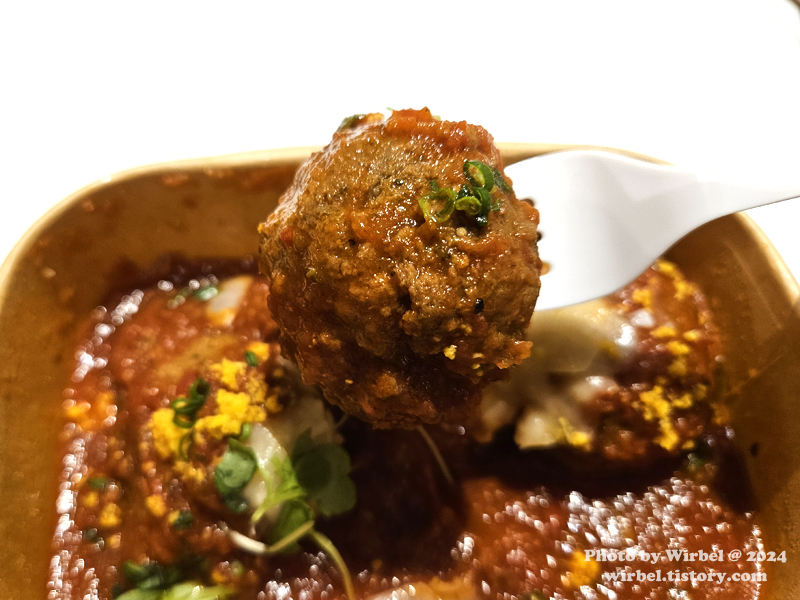 1시간 이상 구워내어 극강의 부드러움을 느낄 수 있는 미트볼.