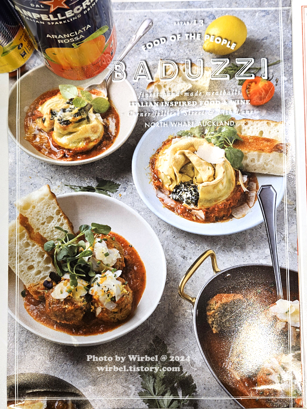 뉴질랜드 바두찌 홈페이지에서 미트볼과 로톨로 메뉴는 다음과 같습니다.