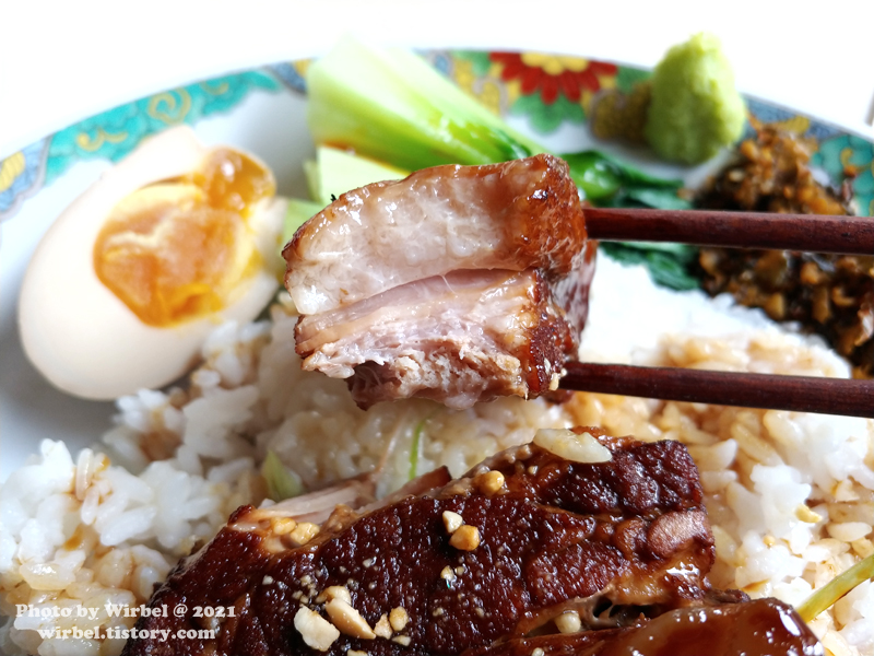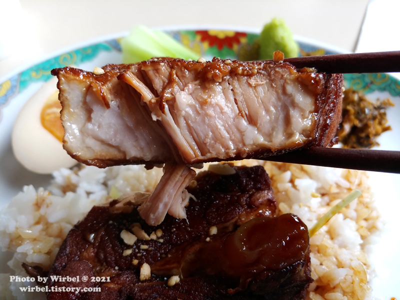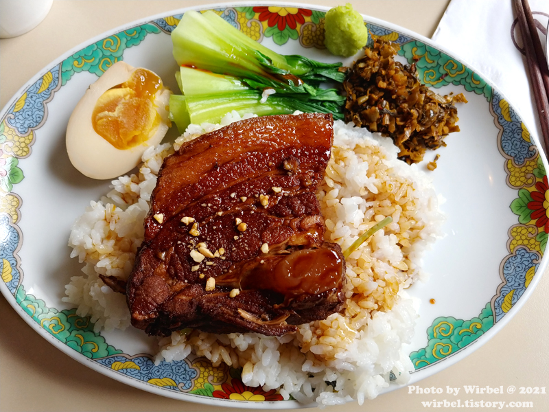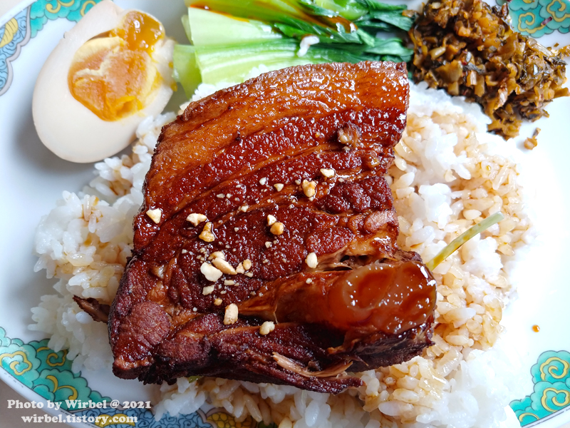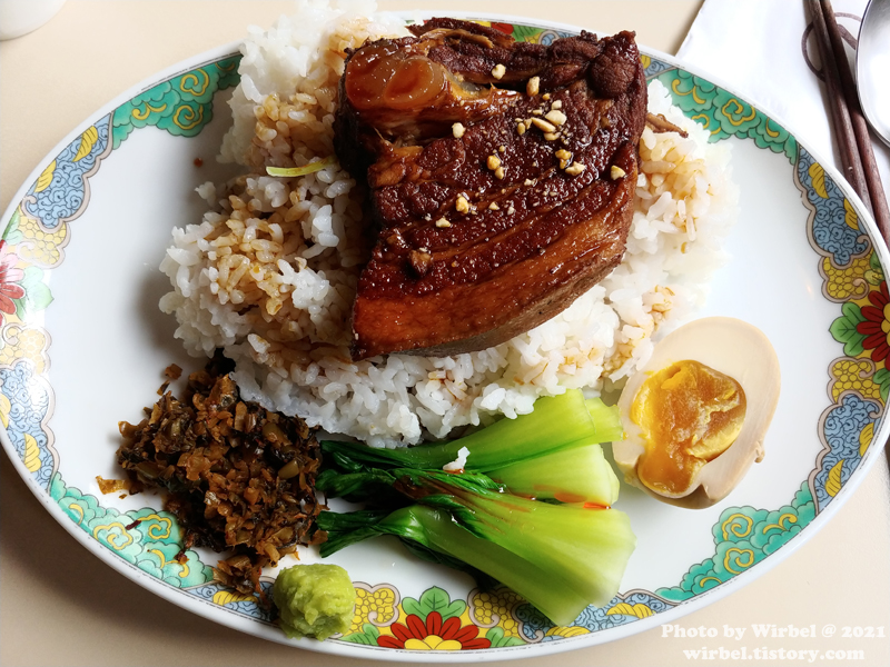 동파육은 큼지막한 한 덩이로 나오고 밥 위에 얹은 후 소스를 뿌려서 마무리했습니다.