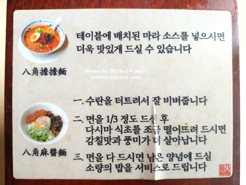 팔각탄탄면과 팔각마장면 안내.