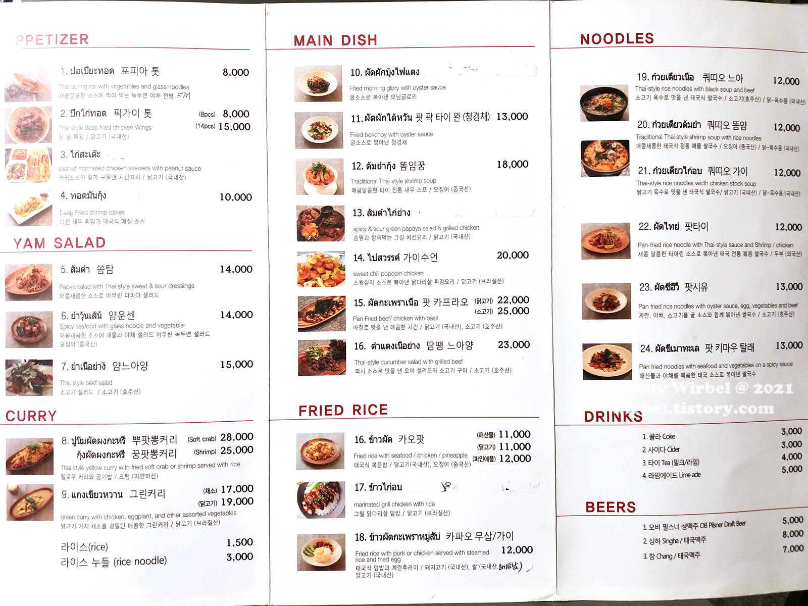 2021년 4월 기준 메뉴 가격 정보입니다.