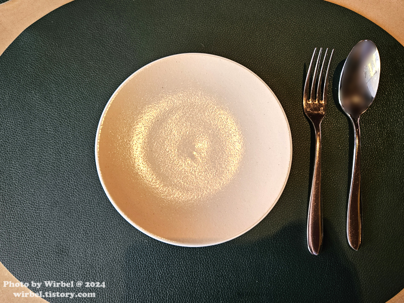 코스 요리 바뀔 때마다 식기를 새로 준비해 줍니다.