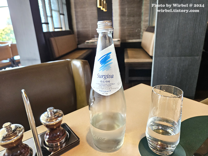 호텔 레스토랑이라서 미네랄워터는 별도로 주문해야 합니다.