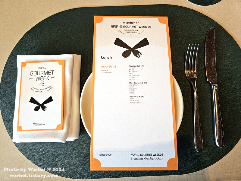 이날 먹었던 현대카드 고메위크26 그랜드하얏트서울 스테이크하우스 런치 코스입니다.