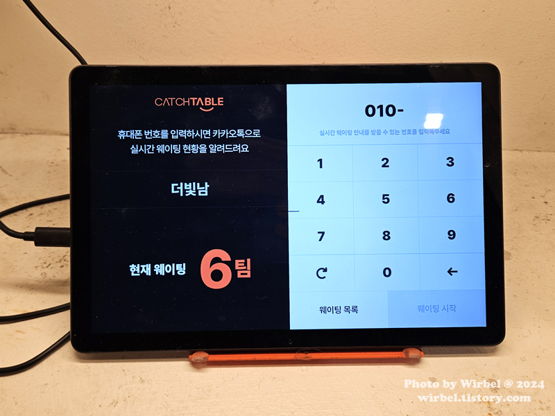 더빛남 웨이팅 시스템은 캐치테이블(Catch Table)을 사용하고 있습니다.