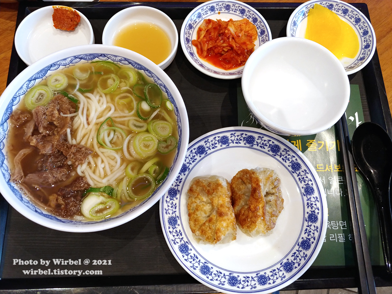 청경채도가니탕면 + 군만두 2P + 음료 14,700원.