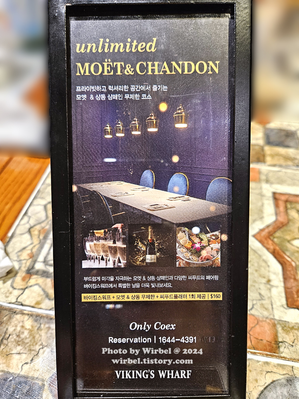 스타필드코엑스몰 바이킹스워프 샴페인 무제한 코스 가격 $160.