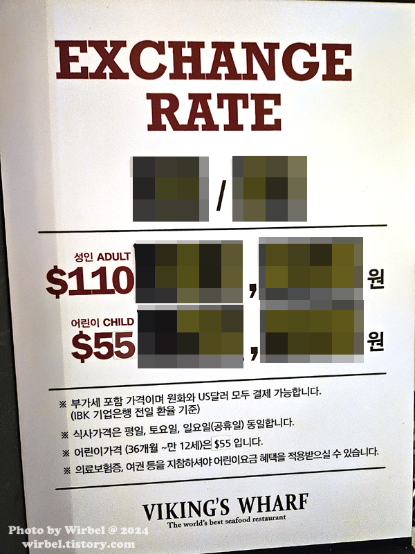 랍스터 뷔페 바이킹스워프는 IBK 기업은행 전일 환율을 기준입니다.