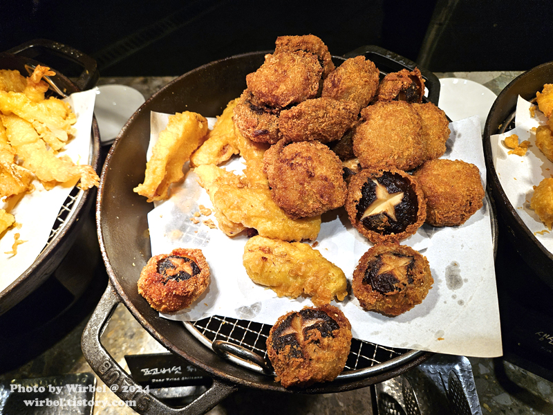 표고버섯 튀김, 바나나 튀김.