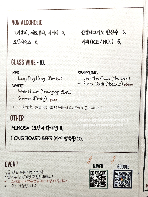 쌤쌤쌤 음료 와인 주류 메뉴 가격.