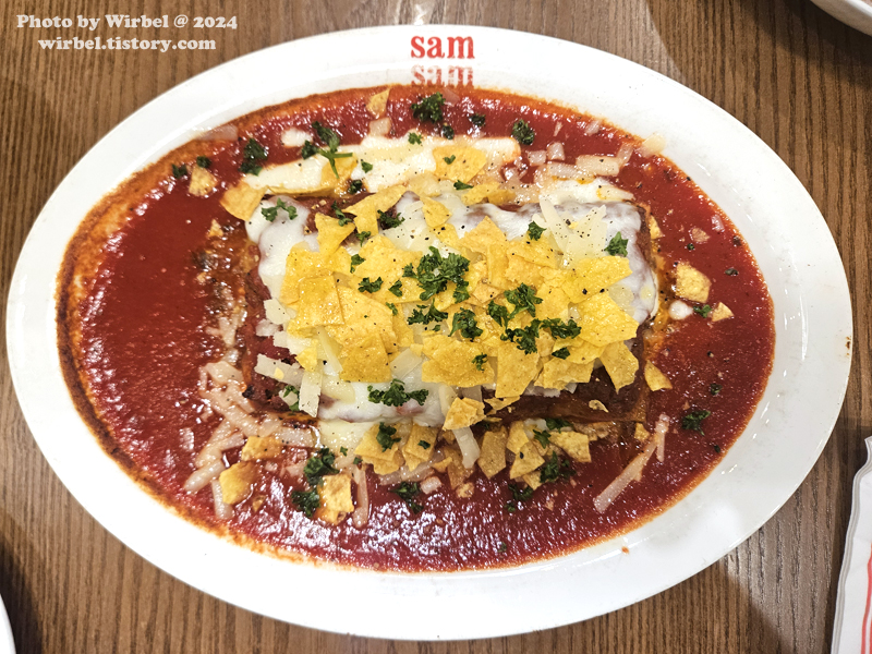 리코타 치즈와 다진 고기들이 잔뜩 들어간 미서부 스타일의 쌤3 시그니쳐 라자냐.