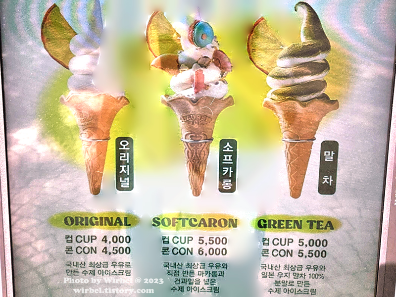 오리지널 아이스크림 컵 4,000원 / 콘 4,500원.